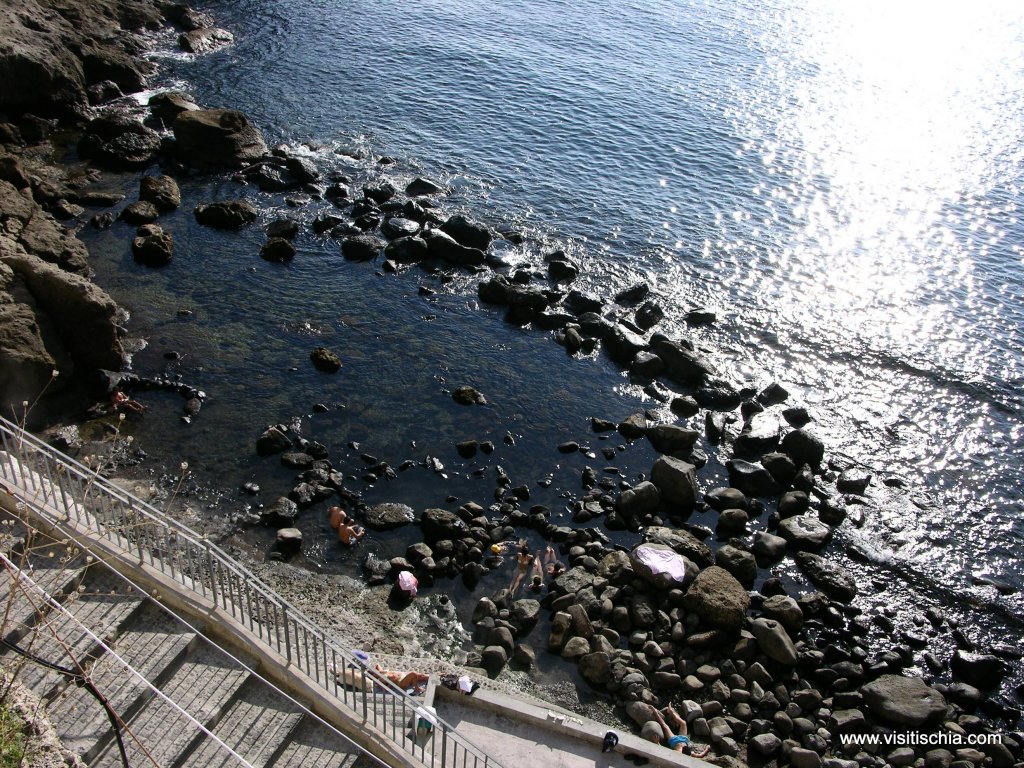 The bay of Sorgeto is situated in the municipality of Forio, just a short walk from Panza. With itsbus lines 1 – CD – CS – 23, you can reach only part of the zone by bus, the rest on foot. If you prefer to move by car, arrive near the bay, where you'll find a parking. Go down 200 stairs. From S. Angelo is possible to reach also the famous Taxi boats.The bay, is not similiar to the other ones, but there are rocks and pebbles, often boiling.