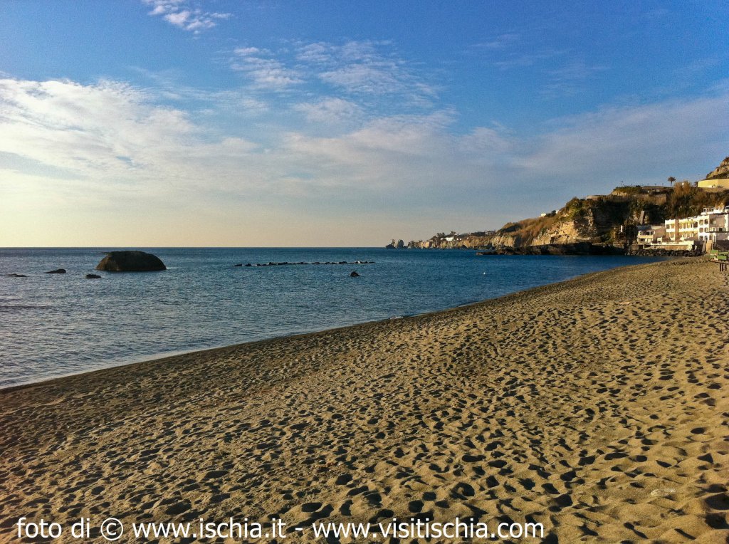 Il più importante complesso termale dell’isola sono sicuramente i Giardini Poseidon e hanno come sfondo una magica lingua di sabbia la cui acqua, cui si attribuivano poteri fecondatrici, fu messa dai romani sotto la protezione di Venere Citarea, da cui il nome Citara, divinità di cui fu trovata una statua di marmo bianco, andata poi distrutta.Mito e leggenda si mescolano tra la bianca sabbia e le limpide acque e danno giustificazioni di alcune caratteristiche morfologiche di questo tratto di mare e costa, come gli scogli che si possono osservare: si dice che di qui sia passata la nave dei Feaci con Ulisse e che al suo ritorno si sia trasformata per punizione in una roccia. Si narra, ancora, che due uomini tentarono la fuga dalla nave, ma che anch'essi furono trasformati in scogli.